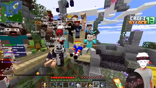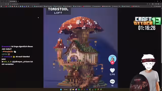 15:36:14Es wird die Rückkehr von Dante und Laurinchen thematisiert, und der Streamer schlägt vor, den Rapper Alpha Stein für ein Quiz zu gewinnen. Der Fokus verlagert sich auf die Bauvorhaben in Minecraft. Es werden Pläne für ein TNT-Duplication-System und diverse Farmen (Holz, Bonemeal, Eisen) erörtert. Eine große Herausforderung ist der Bau einer 200x200 großen Mauer, die eine enorme Menge an Ressourcen erfordert und als nervige Arbeit beschrieben wird.