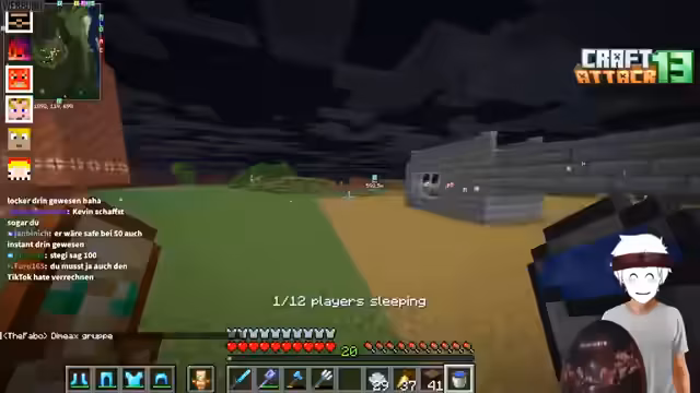 19:27:42Ein schwerwiegender Unfall bei der Creeper-Farm ereignet sich, als ein Creeper explodiert und Nick beinahe sein gesamtes Inventar verliert, einschließlich wichtiger Werkzeuge. Das Team reagiert schnell, um die Situation zu bewältigen und mögliche Verluste zu minimieren. Dieser Vorfall führt zu einer Reflexion über die Risiken und die notwendige Präzision bei der Erstellung komplexer Farmen. Gleichzeitig betont der Streamer die Bedeutung des neuen Zuwachses im Team und den frischen Input, den die neuen Teilnehmer in Craft Attack bringen.