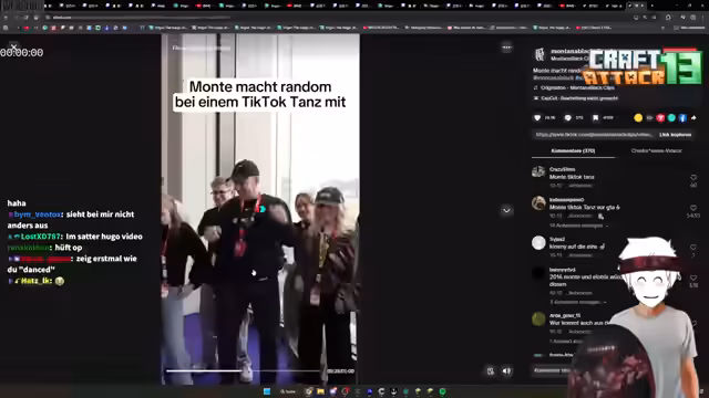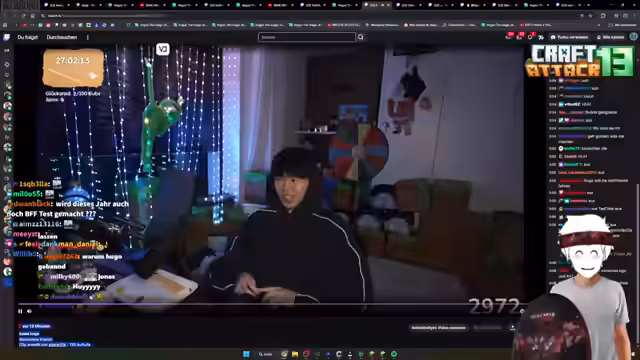 14:38:04Ein wichtiges Server-Ereignis wird erwähnt: Craft Attack habe in der Kategorie '200k Viewer' gestanden, was der Streamer als 'gestört' und 'krass' bezeichnet. Es gibt eine technische Diskussion über den OBS-Stream, bei dem der Streamer feststellt, dass sein Game Capture nicht zentriert ist und es Probleme beim Anpassen gibt. Der Streamer fragt auch den Chat nach seinem Alter, um zu klären, ob er noch im Jugendalter ist.