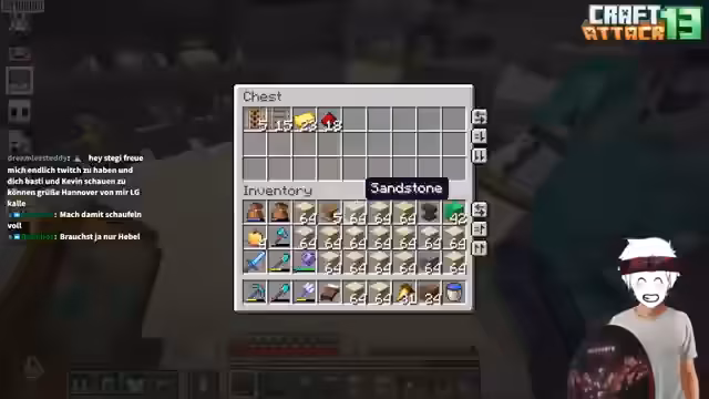 16:39:48Zu Beginn des Streamsabschnitts wird die Konstruktion einer XP-Farm besprochen. Es geht um den Bau von 16 Hebeln, die mit Öfen kombiniert werden, um eine effiziente Methode zur Erfahrungspunkte-Gewinnung zu schaffen. Streamer Stegi erklärt, dass die Hebel die unteren Hopper blockieren, sobald sie aktiviert werden, und es wird erläutert, wie man die gecrafteten Items, in diesem Fall Diamanten, zur XP-Entnahme aus den Öfen wieder entfernt. Dabei wird auch die Notwendigkeit betont, dass der Hebel betätigt werden muss, um die Hopper zu deaktivieren und die Items abzurufen.