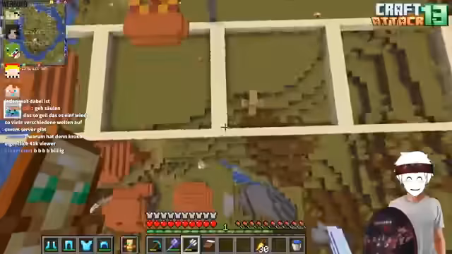 17:35:40Der Fokus kehr zum Gameplay zurück, wobei ein gemeinsamer Bauvorhaben im Mittelpunkt steht. Stegi und ein anderer Spieler überlegen, wie sie eine bestimmte Fläche gestalten sollen, indem sie sie in Hallen unterteilen. Es werden konkrete Materialien wie Windchargs und Bad Omen als mögliche Loot-Quellen für einen Raid erwähnt. Der Spieler erwähnt auch, dass einige Zuschauer seit dem 'Hero'-Projekt dabei sind, was die lange Geschichte und Treue der Community zeigt. Der Bau wird als gemeinsamer Akt der Kreativität und Koordination dargestellt.