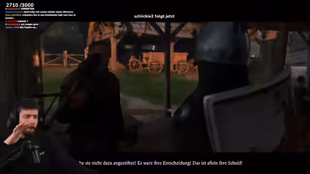 02:22:37Der Streamer befindet sich mitten in einer Detektiv-Quest, in der er den Mord am Holzfäller Roman aufklären muss. Während der Ermittlungen gerät er in eine Reihe moralisch ambivalenter Situationen, in denen er zwischen gewaltfreier Lösung und Tötung entscheiden muss. Der Chat wird interaktiv in die Entscheidungen mit einbezogen, etwa ob der Verdächtige zum Vogt gebracht oder direkt getötet werden soll. Dabei wird auch das Verhalten von Nebenfigure analysiert.