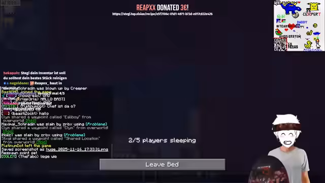 13:23:30Geprägt von Müdigkeit und der späten Stunde, denkt der Streamer über die verbleibenden Aktivitäten nach. Neben dem Bau von Ringo-Bingo wird die unvorhergesehene Situation angesprochen, dass alle Blöcke verschwunden sind. Die Zeit nahe der 2-Uhr-Marke signalisiert das langsame Ende des Streams. Dabei werden persönliche Reflexionen über den anstrengenden Tag und die verbleibende Energie geäußert.
