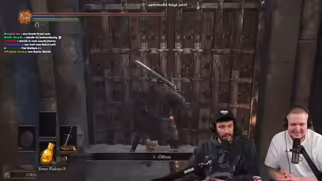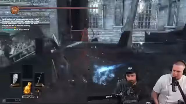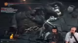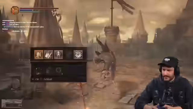 03:30:34Der Fokus liegt auf einem besonders beängstigenden Boss-Kampf in Dark Souls 3, der eine zweite Phase besitzt. Der Streamer empfindet den Boss als 'fucking scary' und unbesiegbar. Während des Kampfes kommt es zu einer technischen Unterbrechung durch einen Mitspieler, die ihn aus dem Konzept bringt. Er entschuldigt sich bei seinem Mitspieler 'Patrick' für die Verwirrung, die durch das eingestellte Spielmusik entstanden ist, und motiviert ihn, weiterzumachen.