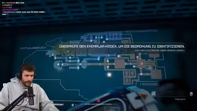 00:44:24Die Spieler starten ihre erste Mission in 'Species Unknown', die darin besteht, eine Blackbox zu finden und Daten zu extrahieren, um mehr über die Bedrohung im Weltraum zu erfahren. Eine wichtige Warnung ist, das Exemplar nicht zu töten. Die Spieler äußern sich humorvoll über die Herausforderung, die Kreatur von sich selbst zu unterscheiden, und der Streamer schlägt vor, dem Instinkt zu vertrauen. Während der Mission kommt es zu weiteren technischen Schwierigkeiten mit den Mikrofonen, die jedoch behoben werden können. Die Spieler navigieren durch die dunklen und metallischen Gänge des Schiffes, wobei der Streamer seine Abneigung gegen solche bedrückenden Weltraum-Settings zum Ausdruck bringt, im Gegensatz zu seiner Liebe zu 'Halo'. Die Interaktionen zwischen den Spielern sind von Humor geprägt, insbesondere durch die Anpassung der Charaktere, die als 'hässliche Schweine' bezeichnet werden. Sie philosophieren über ihre Rolle als 'Ausgestoßene' und die Notwendigkeit, sich zusammenzureißen. Die Spieler finden Munition und Adrenalinspritzen, was auf bevorstehende Kämpfe hindeutet, und entdecken einen 'explosiven Kanister', der zu weiteren Neckereien führt.