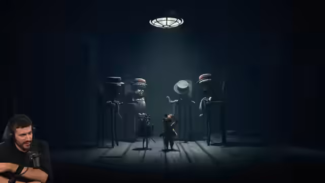 01:23:50Der Stream beginnt mit der Erkundung einer neuen, industriell anmutenden Umgebung. Die Spieler durchstreben zunächst ungesicherte Bereiche, stoßen auf eine mysteriöse Kiste und interagieren mit einem unklaren Sternobjekt. Die Szene wechselt abrupt zu einem turbulenten Büro, in dem eine massive, nagelneue Chefin die Spieler bedroht. Nach einer kurzen Flucht gelangen sie in einen Lagerraum, der als pastenartiges Kinderheim beschrieben wird, mit Akten, die auf eine finstere Verarbeitung von Kindern hindeuten. Der Ort erinnert an die düstere Atmosphäre der ersten Little Nightmares-Teile.