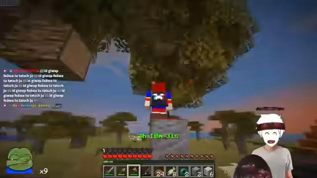 02:19:26Die Diskussion über Tiere beginnt mit der Frage, was 'Amadillo' auf Deutsch bedeutet, woraufhin die beiden feststellen, dass es 'Gürteltier' heißt. Es folgt ein kurzer Exkurs über die Bedeutung von Gürteltieren für die Gürtelproduktion. Anschließend konzentrieren sie sich wieder auf das Spiel, wo ein Seed gefunden und Bone Meal eingesetzt wird, um ihn anzupflanzen. Es wird kurz überlegt, ob einer von beiden einen Gürtel trägt. Währenddessen wird über das Aussehen einer misslungenen Konstruktion diskutiert, die an ein Kamel oder eine Giraffe erinnert, bevor sie sich auf die Ähnlichkeit mit einer Schlange einigen. Die Frage nach der Lieblingsschlange führt zu einer Diskussion über verschiedene Schlangenarten, einschließlich Cobra und Blindschleiche, und endet mit dem Imitieren einer Klapperschlange. Der Übergang von Tag zu Nacht im Spiel wird als Wallpaper-Material gelobt, und es entstehen Screenshots mit einer Perle in der Hand vor dem Mond. Es folgen humorvolle Kommentare zu Chat-Nachrichten und dem plötzlichen Spawn von Mobs, was zu hektischen Reaktionen und dem Einsatz von Enderperlen führt.