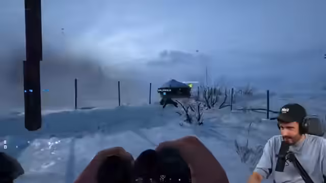 01:18:07Nach den technischen Problemen starten der Streamer und Kalle erneut in Hell let loose. Sie spawnen an verschiedenen Orten des Schlachtfelds. Der Streamer erhält die Rolle des Snipers und Kalle unterstützt ihn als Spotter. Obwohl sie anfangs Schwierigkeiten haben, kommunizieren sie effektiv mittels des In-Game-Chats und beginnen, eine taktische Vorgehensweise zu entwickeln, um gegnerische Einheiten auszuschalten und das Ziel einzunehmen.
