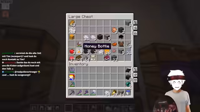 00:48:33Die Rettungsaktion wird live durchgeführt. Paul steuert den Happy Ghast gezielt zu den Koordinaten des Streamers. Es kommt zu mehreren kritischen Momenten, bei denen der Streamer bereits Schaden durch den Absturz nimmt. Der erste Versuch scheitert knapp, da Paul den Streamer verfehlt. Ein zweiter Versuch, der auf der Verwendung von Enderperlen basiert, schlägt ebenfalls fehl, und der Streamer stirbt in der Welt unter der Bedrock-Decke.