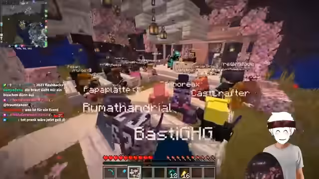 06:16:30Gustavs Miniaturwelt wird thematisiert, und es entsteht ein humorvoller Beef über das Abbauen von Blöcken. Der Streamer witzig von einem Krieg gegen das Miniatur-Wunderland, der mit miniaturisierten TNT-Dupern und Axolotls geführt werden soll. Die Idee, in der Lore der Spielwelt zu bleiben, führt zu Vorschlägen, die Basen der Teilnehmer und Miniaturen zu kombinieren. Parallel dazu gibt es eine Diskussion über die Sprachwahl im Minecraft-Server, wobei der Streamer auf Deutsch spielt, um jüngere Zuschauer zu erreichen.