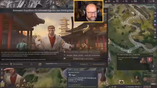 02:17:10In China wird eine Monument-Expedition gestartet, um die Bildung weiter zu steigern. Während der Erkundung des Jisushan-Tempels wird eine mysteriöse Markierung entdeckt und verewigt, was den Bildungswert erhöht. Ein weiteres Highlight ist der Besuch eines Pilgerhauses, das einen Bonus auf Krankheitswiderstand gewährt. Leider führt der Genuss eines lokalen Getränks zu einer Lebensmittelvergiftung, die behandelt werden muss.