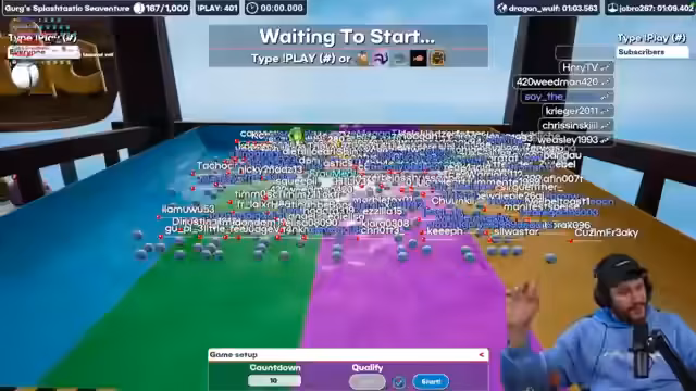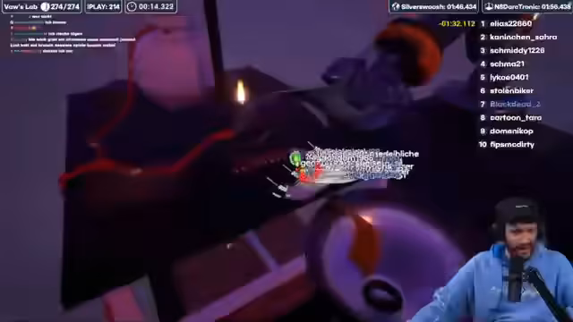 00:11:02Der Streamer berichtet über sein Wochenende mit seinem Bruder Christian, in dem sie Videos für seine Kanäle aufgenommen haben, die bald veröffentlicht werden. Er erzählt von einem Familienessen und einem entspannten Sonntag in einem Pflanzenladen. Er ermutigt die Zuschauer, weiterhin Clips vom Stream einzusenden, die auf seinen Social-Media-Kanälen veröffentlicht werden könnten. Nach der Begrüßung einiger Zuschauer fragt er, ob sie mit dem Spielen beginnen oder vorher eine Runde Murmeln spielen sollen. Er stimmt einer Runde Murmeln zu, bedankt sich für Prime-Subs und erklärt kurz das Spielprinzip für neue Zuschauer, bei dem man durch das Schreiben von '!play' im Chat teilnehmen und eine Murmel ins Rennen schicken kann. Er kündigt einen möglichen IRL-Stream mit Ronny Berger in Spandau für morgen an und erwähnt Pläne für Dark Souls und Midnight Murder Club in dieser Woche.