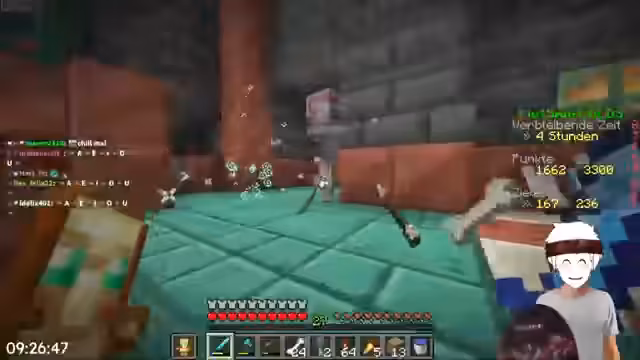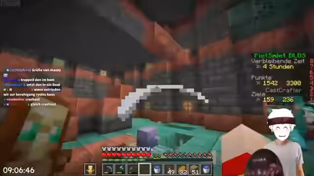 06:32:40Nach dem Erfolg des Wither-Kampfes analysieren die Streamer die aktuelle Rangliste und stellen fest, dass sie ca. 100 Punkte auf den führenden Team Basti aufholen müssen. Sie identifizieren mehrere machbare Advancements wie Tränke herstellen, Tiere züchten und bestimmte Mobs töten, die diese Punkte bringen können. Die Stimmung ist motiviert, und es wird beschlossen, sich in den verbleibenden Stunden auf diese Aufgaben zu konzentrieren und möglicherweise auch in einer Single-Player-Welt weiter zu trainieren.