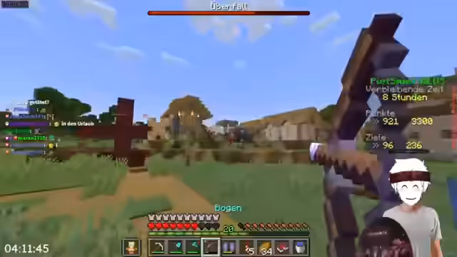 00:24:33Stegi entdeckt, dass die Bienen aufgrund von Schlafenden im Spiel nicht mehr verfügbar sind, was seine Strategie beeinträchtigt. Er muss sich nun auf Creeper in der Nacht konzentrieren. Er teilt Koordinaten mit Peter und bereitet sich auf einen Raid vor, indem er Ressourcen abbaut und das Dorf sichert. Es kommt zu Diskussionen über die Schwierigkeit, Dorfbewohner zu schützen und die richtige Strategie für den Raid zu finden. Stegi und Peter tauschen sich über die beste Vorgehensweise aus, wobei sie verschiedene Aspekte wie Rüstung, Pfeile und Essen berücksichtigen. Stegi plant, während des Raids kurz wegzufliegen, um Bienenstöcke zu sammeln und Phantoms zu farmen. Er bittet Peter um Raketen und tauscht Essen aus, um für den bevorstehenden Kampf gerüstet zu sein. Es werden Vorbereitungen getroffen, um Dorfbewohner einzubauen und Redstone-Mechanismen zu nutzen.