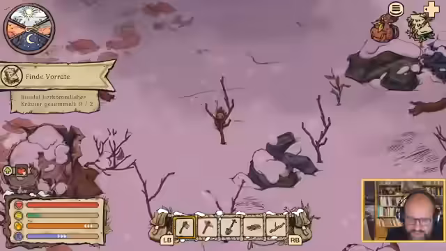 00:39:38Das Spiel "Winter Burrow" wird gestartet, ein erst kürzlich erschienenes Spiel, das Steinwallen bereits in einer Demo privat angetestet hatte. Die Maus kehrt nach dem Tod ihrer Eltern in ihr altes, verfallenes Zuhause zurück. Die ersten Aufgaben bestehen darin, ein Feuer zu entfachen, eine Sandstein-Axt herzustellen und ein einfaches Bett zu bauen. Dabei muss die Maus Ressourcen wie Zweige, Kiesel und Flachsfasern sammeln. Die Kälte und die begrenzte Ausdauer der Maus stellen erste Herausforderungen dar, und die Spieler müssen sich auf die Suche nach Nahrung begeben. Nach dem Bau der grundlegenden Einrichtungsgegenstände wird die Aufgabe gestellt, Tante Betulina zu finden, die östlich der Holzbrücke wohnen soll. Die Maus macht sich auf den Weg, um ihre Tante zu suchen, die ihr weitere Anweisungen und Unterstützung geben kann.