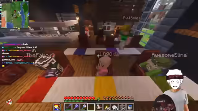 06:30:58Der Streamer und weitere Spieler besuchen eine im Jailbreak-Stil erbaute Anstalt, die wie eine Justizvollzugsanstalt (JVA) gestaltet ist. Dort wird über Skins von bekannten Personen, insbesondere von Cheatern und fiktiven Figuren wie Darth Maul, gesprochen. Der Streamer reflektiert über die Rolle, die er in dieser Umgebung einnehmen könnte. Anschließend werden weitere Bereiche der Struktur mit speziellen Blöcken wie rotem Sandstein erkundet.