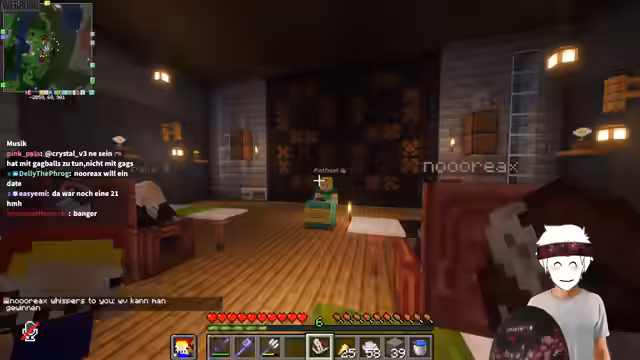 06:24:55Nach dem Bingo-Spiel und dem Eintauschen des Rollencharakters ("Stegi" statt "Stegi") wird das Thema Rollenspiel (RP) auf dem Server aufgegriffen. Der Streamer kündigt an, nun mit seinem Charakter weiter zu interagieren und das Geschehen aus dieser Perspektive zu fortzusetzen. Es werden Pläne für eine Erkundung im Ende sowie den Bau weiterer Strukturen bekannt gegeben, während er gleichzeitig in der Rolle des RPG-Charakters handelt und Fragen der Zuschauer beantwortet.
