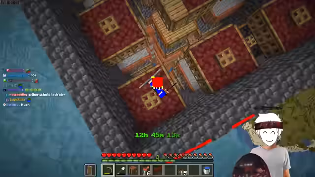 01:14:43Die Duo Challenge beginnt mit der Absprache zur Materialbeschaffung und dem Bau einer Zombiefarm. Einer der Streamer benötigt dringend Holz und andere Ressourcen, während der andere bereits Materialien sammelt und Vorbereitungen für eine effiziente Mobfarm trifft. Die erste große Aufgabe ist das Errichten und Erweitern der Farm von fünf auf neun Ebenen, um die Spawnrate zu verdoppeln und die Ressourcenproduktion zu optimieren.