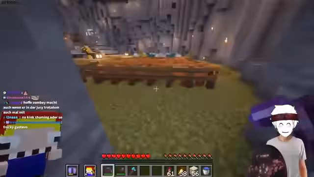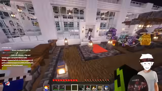 03:17:51Die Tour durch die Minecraft-Base wird fortgesetzt, wobei zunächst eine kleine Farmetage mit Kühen und Schafen gezeigt wird. Anschließend präsentiert der Streamer einen Bereich, in dem Gumbo die Villager trainiert, da diese sich dort schneller zurücksetzen als in seiner eigenen Base. Ein Museum für Köpfe, darunter der Kopf vom ersten Tod des Streamers, wird ebenfalls vorgestellt. Danach geht es weiter zu einer automatischen Bambusholz-Farm, die das Holz selbstständig erntet und in Schalkerboxen lagert. Eine Zuckerrohr-Farm, die mehrstöckig und in einem S-förmigen Gang angelegt ist, wird ebenfalls gezeigt. Die Farm ist ineffizienter, da nicht überall Observer platziert sind, was jedoch bewusst so gewählt wurde, um die Ästhetik zu verbessern. Die untere Etage ist für Sticks, die mittlere für Holzplanken und die obere für den Autosmelter vorgesehen. Der Autosmelter, dessen Design von Heiko übernommen wurde, füllt sich automatisch mit Bambusholz und kann, sobald er voll ist, große Mengen schmelzen.