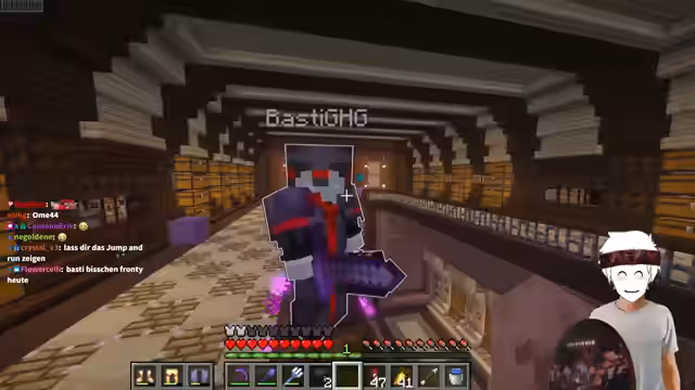 02:42:18Basti zeigt seine Bauwerke, darunter verwinkelte Gänge und eine geplante Straße mit einem Gully, der zu einem unterirdischen Bereich führt, wo Gefängnis und Labor nur in einem bestimmten Bereich zugänglich sein werden. Er plant auch den Bau einer Fabrik. Ein Raum mit Allays, die unterschiedliche Items halten, wird gezeigt, wobei ein bestimmtes Item eine Tür öffnet. Dies soll den Spielern Zeit kosten und ist als magisch und bunt beschrieben. Es wird erklärt, dass das gesuchte Item täglich wechselt, was die Herausforderung erhöht. Die Spieler diskutieren die Schwierigkeit, das richtige Item zu finden und die Tür zu öffnen.