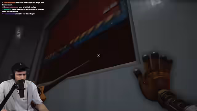 02:34:12Zu Beginn des Streams steht der Streamer vor einem Raum mit doppelten Spiegeln und ist zunächst verwirrt. Er stellt fest, dass in der Poppy Playtime Corporation überall der Strom ausgefallen ist. In einem anderen Raum findet er eine neue Hand, die wie eine warm-kalte Hand funktioniert. Er entdeckt eine Loopbox und vermutet, dass es sich um eine Batterie handelt, die er für die Stromversorgung benötigt.