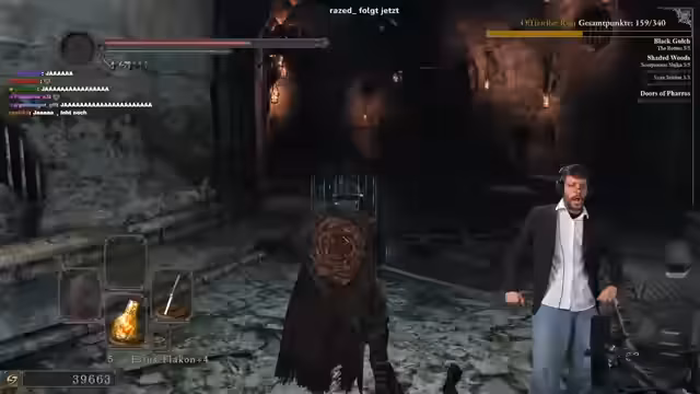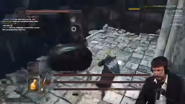 00:39:53Nach dem Sieg über die Sentinels geht es zum Verfolger, dem ebenfalls schnell beigesteckt wird. Der Fokus verlagert sich anschließend auf die Gargoyles, deren Kampf als relativ einfach beschrieben wird, auch wenn es sehr knapp wurde. Nach diesem Erfolg werden einige Fähigkeiten wie die Bewegungsgeschwindigkeit und Estus-Regeneration maximiert. Bevor der Sinner angegriffen wird, erhält der Streamer den entscheidenden Hinweis, die Statuen vor dem Bossroom zu zerstören, um den Kampf zu vereinfachen. Die Taktik, blitzschnell durch den Raum zu sprinten, um den Angriff der Brüder auszulösen und anschließend wieder zu fliehen, wird als bewährte Methode erklärt.