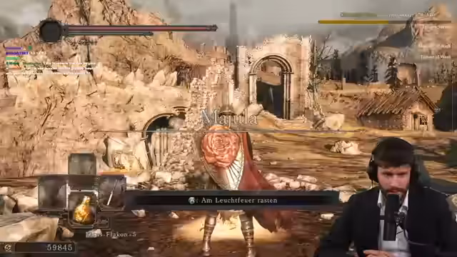 04:08:20Im weiteren Verlauf des Streams konfrontiert der Streamer einen optionalen Boss, den Pferdereiter. Er zeigt sich dabei strategisch und vorsichtig, indem er den Gegner auf Distanz hält und Giftpfeile einsetzt. Der Sieg über diesen Boss sowie das anschließene Clear des Gebiets werden als wichtiger Meilenstein im Soulkeepers-Run gefeiert.