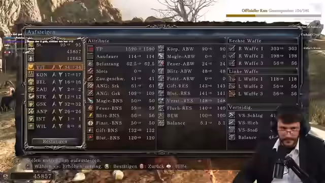 00:02:11Der Stream beginnt mit einem herzlichen Willkommen zu Dark Souls 2, gefolgt von einer Dankesrede an die Supporter im Chat. Der Streamer drückt seine Aufregung und die Angst vor dem Run aus, versichert jedoch, dass er mit einem guten Vorsprung starte. Der Plan für den Tag wird skizziert: Sollte der Run bis 15 Uhr erfolgreich sein, geht es direkt weiter, ansonsten ist eine Aufnahmesession geplant. Eine wichtige Ankündigung betrifft das bevorstehende Event im T-Server, ein Among-Us-ähnliches Spiel, das mit anderen Streamern stattfinden wird.