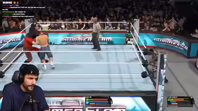 00:00:01Der Streamer beginnt mit technischen Schwierigkeiten, die kurzzeitig den Stream unterbrechen. Nach der Rückkehr startet das Spiel WWE2K26, und es gibt erste Auseinandersetzungen zwischen den Spielern, insbesondere mit John Cena. Die Spieler diskutieren über verschiedene Moves und Techniken, um im Ring zu gewinnen. Es gibt zahlreiche Missverständnisse bei der Bedienung des Controllers und den Ausführung der Aktionen.