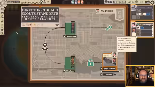 02:53:32Der Tagesablauf wird an die Nachrichtenlage angepasst. Nachdem wichtige Geschichten wie der Reichstagsbrand und die Niederlage eines Senators bearbeitet wurden, werden neue, eingehende Meldungen sofort priorisiert. Ein Praktikant wird für eine Kriminalitätsgeschichte rekrutiert. Der Fokus liegt darauf, alle vier Mafia-Geschichten und zwei Konkurrenzthemen rechtzeitig abzuschließen. Mitarbeiter werden gezielt eingesetzt, um Verzögerungen zu vermeiden und die Berichterstattung trotz komplexer Themen effizient fortzuführen.