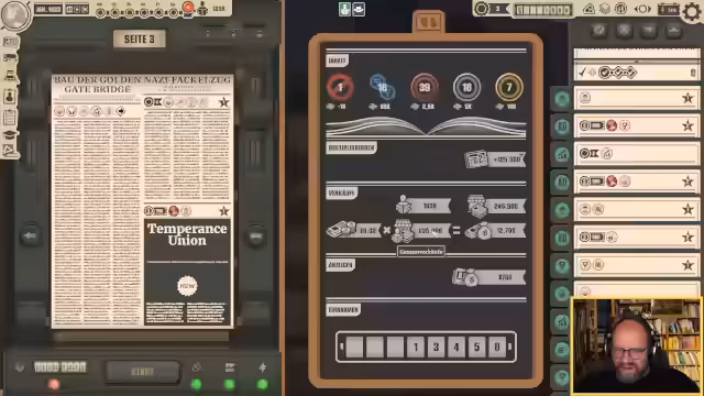 04:17:13Trotz der Herausforderungen wird eine historische Rekordauflage von 664.000 Exemplaren und ein neuer Rekord von 46 Einflusspunkten erreicht. Der Verleger erhält Lob von der Mafia. Für die Zukunft wird über die strategischen Ziele diskutiert. Ein attraktives Ziel ist die Übernahme des Gewerkschaftsvorsitzenden-Sitzes, um die Kontrolle über die Dockarbeiter zu erlangen, was als langfristiges und anspruchsvolles Vorhaben gilt.