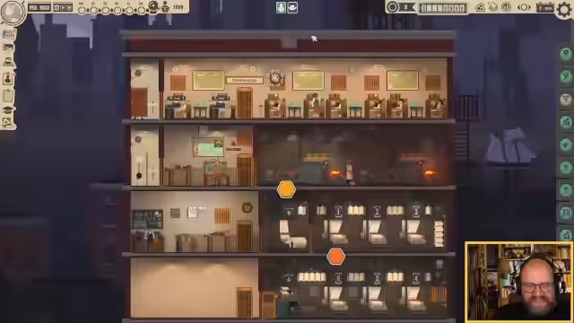 00:50:20Der Hauptabend widmet sich dem Spiel News Tower, einem Zeitungs-Simulations-Setting im Jahr 1933. Das Ziel für diese Session ist die Modernisierung der Produktionsabläufe. Nach Analyse der Probleme bei der Produktion wird beschlossen, die Linotype-Maschinen einzuführen, um die Satzgeschwindigkeit zu erhöhen. Gleichzeitig wird ein dritter Montagetisch installiert. Ein Umbau des Redaktionsgebäudes ist notwendig, um Platz für die neuen Maschinen zu schaffen und die Arbeitsbedingungen zu optimieren.