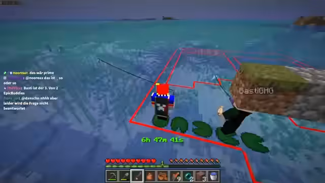 00:08:08Die zentrale Aufgabe bestand im Bau einer Level-Farm. Man einigte sich auf die Errichtung einer 15x15 Blöcke großen Fläche, um durch das Fangen von Mobs Level zu sammeln. Die Strategie des effektivsten Level-Ernns war klar umrissen: das Angeln von Fischen, insbesondere tagsüber, und der Bau einer Monster-Farm. Dies sollte die Grundlage für spätere, aufwendigere Projekte wie die Erschaffung von Nether- und End-Portalen bilden, um letztlich den Enddrachen zu besiegen.