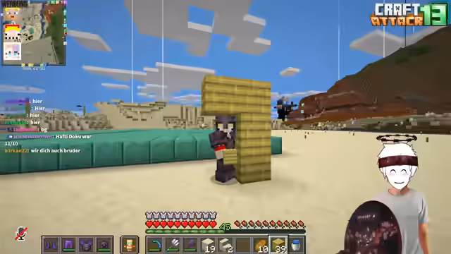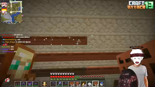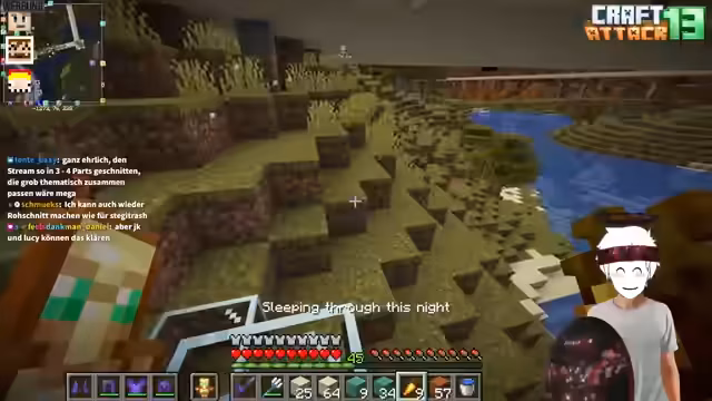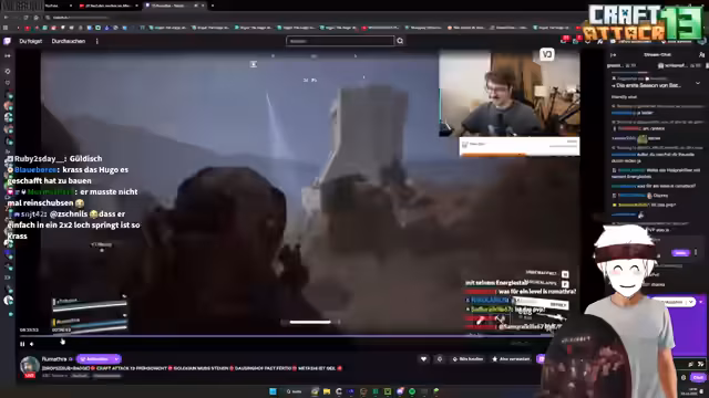 14:08:22Es wird über die Notwendigkeit gesprochen, häufiger Ideen auszutauschen, da Erfur als sehr kompetent in Content-Fragen angesehen wird. Eine frühere Schnitzeljagd-Idee, die vor zwei Jahren umgesetzt wurde, wird als "richtig geil" bezeichnet, und es wird überlegt, ob man etwas Ähnliches wiederholen sollte, möglicherweise in Richtung eines Koffer-Formats mit Rollenspiel und Rätseln. Nach einer kurzen Toilettenpause von Stegi übernimmt Erfur den Stream und beantwortet Fragen der Zuschauer. Er teilt eine persönliche Anekdote über einen Fehler beim Kennenlernen einer Person, bei dem er "Mom" anstelle einer Abkürzung schrieb, was zu Missverständnissen führte und die Beziehung beendete. Erfur schätzt sein Alter auf 22 Jahre, obwohl einige Zuschauer ihn auf 27 oder sogar 43 schätzen. Er erwähnt, dass er sein Abitur während Craft Attack gemacht hat, was eine "katastrophale Zeit" war. Ein Raid von Danergy wird empfangen, und Erfur scherzt, dass er der "Kanal der Woche" sei und Stegis Stream übernehme, während Stegi auf der Toilette ist.