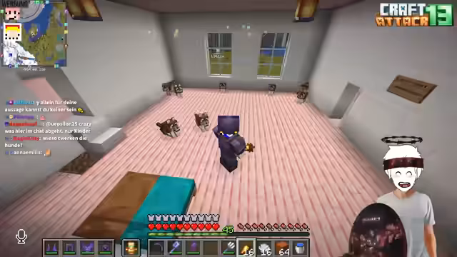 12:10:10Es wird eine Beerdigung für 100 Hunde oder ähnliches vorbereitet, die um Mitternacht stattfinden soll. Die Nachricht von Rose, die um mentale Unterstützung bat, überraschte die Anwesenden nach einer zuvor guten Stimmung. Es wird über die Notwendigkeit von Blumen für die Beerdigung gesprochen und ob ein Portal im Nether genutzt werden kann, um schnell dorthin zu gelangen. Die Diskussion dreht sich auch um die Anwesenheit von Joe und die Suche nach schwarzer Farbe für angemessene Kleidung. Es wird über die Respektlosigkeit gesprochen, wenn jemand, der die verstorbenen Hunde nicht kannte, unangemessen gekleidet wäre. Es wird über die Traditionen einer Beerdigung wie Leichenschmaus und Musik gesprochen, bevor man sich auf den Weg zum Ort des Geschehens macht.