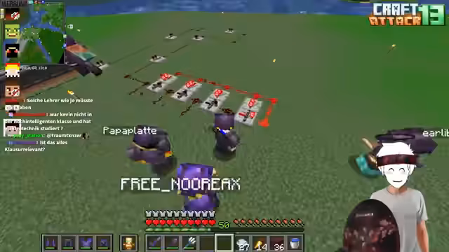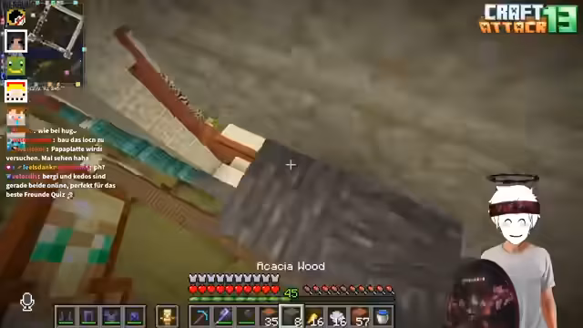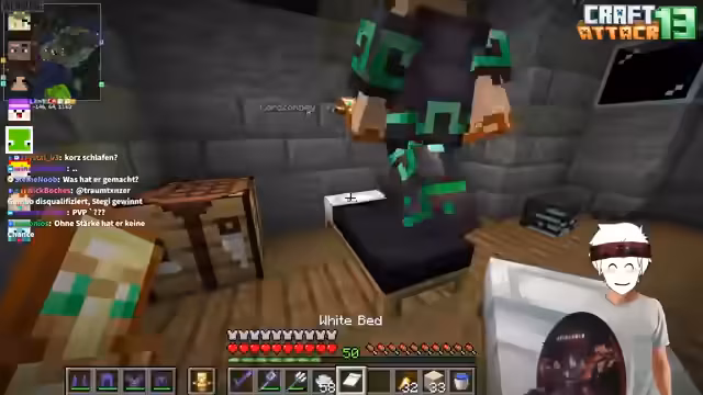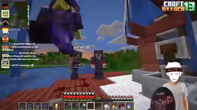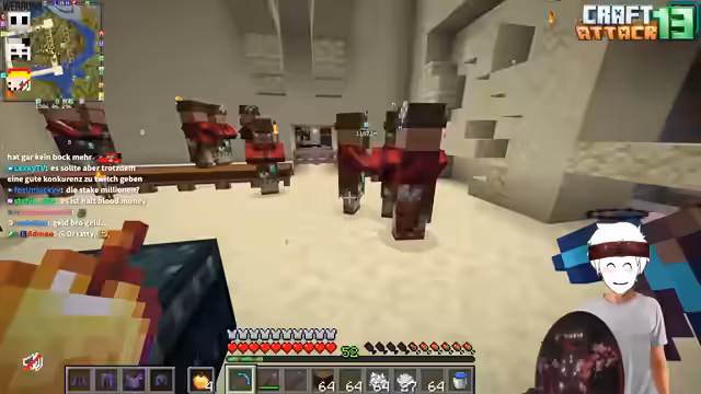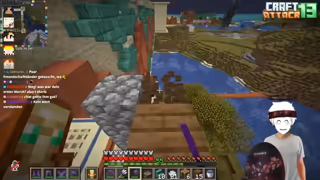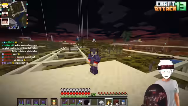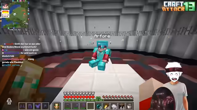 14:48:49Nach einer Phase der Selbstfindung in Craft Attack hat Erfur ein Projekt gefunden, das ihm Spaß macht: eine eigene Quizshow namens "Wer wird Yamantionär?". Die Base ist als Arena für die Quizshow konzipiert, mit Bereichen, wo sich Kandidaten hinsetzen können. Das zuvor aufgenommene Video-Segment dient als kleiner Abschnitt für diese Show, bei dem sich die Teilnehmer eine Sache merken müssen, um Fragen dazu beantworten zu können. Stegi ist überrascht von diesem Twist, da die vorherige Diskussion eine Schnitzeljagd vermuten ließ. Erfur bestätigt, dass die Fragen bereits personifiziert und auf spezifische Kandidaten zugeschnitten sind, darunter Minecraft-Wissen, Allgemeinwissen und Insider-Informationen. Kevin soll der erste Kandidat sein. Stegi bietet an, Kevin zu fragen, falls Erfur Schwierigkeiten hat. Erfur erklärt, dass er sich auf Gameshows und Events konzentrieren möchte, da ihm das Bauen in Craft Attack keinen Spaß macht. Er freut sich über Stegis Begeisterung für sein einzigartiges Projekt, das sich vom üblichen Craft Attack-Weg abhebt.