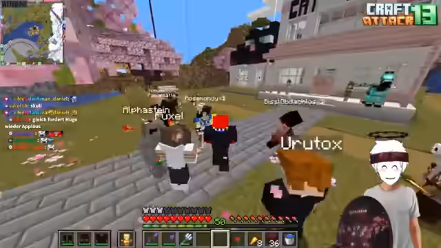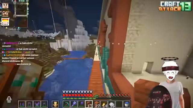 16:14:45Es wird über die Lieblings-Crossover in Craft Attack gesprochen, wobei Alphastein besonders hervorgehoben wird. Die anfängliche Fehleinschätzung, dass Alphastein nur kinderfreundlichen Content mache, wird revidiert, da seine Intelligenz und sein Humor, der auch für ein älteres Publikum geeignet ist, erkannt wurden. Die Interaktionen mit anderen Spielern wie Hugo und dessen skurrile Bauwerke werden humorvoll kommentiert. Die einzigartige Atmosphäre von Craft Attack, die durch die Mischung verschiedener Persönlichkeiten und die entstehenden Dynamiken entsteht, wird gelobt. Die friedliche und positive Stimmung unter den Teilnehmern, auch bei großen Menschenansammlungen, wird als besonders wertvoll empfunden. Der Stream endet mit einem positiven Rückblick auf die vielfältigen Ereignisse und Interaktionen, die den Abend geprägt haben, und der Vorfreude auf weitere Bauprojekte und gemeinsame Erlebnisse.