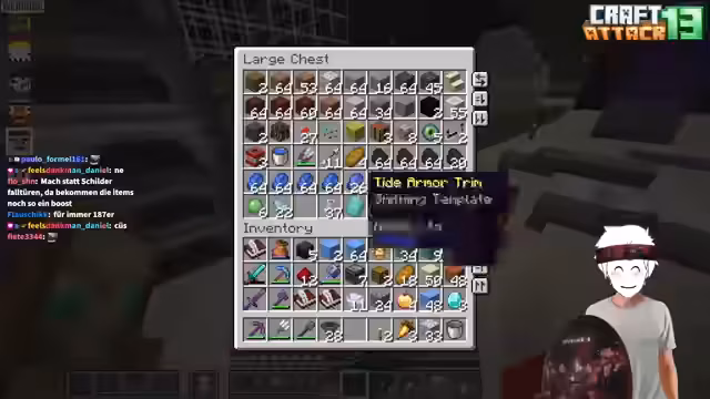 04:51:17Es werden verschiedene Custom-Items im Stream begutachtet und bewertet. Besonders hervorgehoben wird eine Rüstung, deren Kombination von Einzelteilen gelobt wird, insbesondere die Elytra von 'Mina', die als 'echt gut geworden' beschrieben wird. Die Elytra wird direkt mit der von 'Beni' ausgetauscht. Es wird erklärt, dass die Model-Version einiger Items schwierig umzusetzen ist, wenn sie nur gezeichnet ist, weshalb später auch ein Trident in einer Pixel-Version gezeigt wird. Die Alita wird als passend zur Rüstung mit ihrer schwarzen Outline und dem pinken, feenflügelartigen Design empfunden. Anschließend werden weitere Items wie 'Bastys Schwert' und das 'Oreo Shield' vorgestellt, wobei letzteres mit Humor als 'akzeptiert es einfach, wie es aussieht' kommentiert wird. Auch eine 'Tingle Tungle Bob Goldene Carrot' wird gezeigt, die für Verwirrung und Belustigung sorgt.