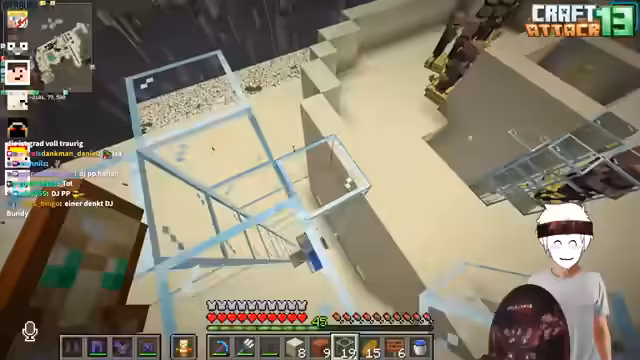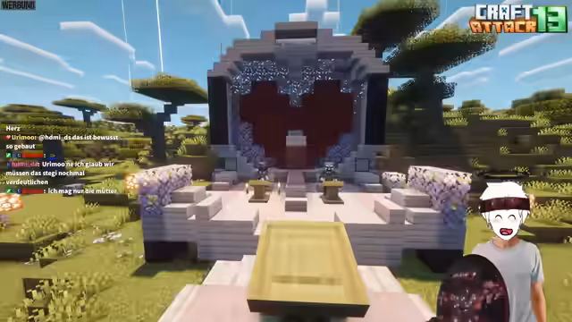 14:53:20Es wird über verschiedene Spielstile in Craft Attack diskutiert, insbesondere über die Rolle von PvP-Spielern, die als unkreativ und langweilig empfunden wird. Im Gegensatz dazu werden Spieler gelobt, die etwas Einzigartiges machen und aus der Masse herausstechen. Der Streamer äußert seine Freude am aktuellen Craft Attack-Event, obwohl sein eigenes Bauprojekt noch nicht weit fortgeschritten ist. Er findet es besonders erfüllend, anderen Spielern zu helfen und deren Freude zu sehen, im Gegensatz zum Bauen für sich selbst, wo er oft unentschlossen ist. Es wird eine Zusammenarbeit mit Gustav erwähnt, der für seine Perspektiven und Illusionen bekannt ist, und der Wunsch geäußert, dies auch für den Streamer umzusetzen.