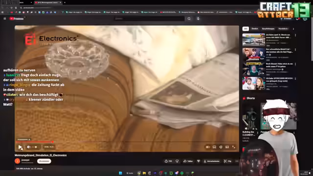 07:14:08Es wird die Idee geäußert, ein „Brand-Praktikum“ bei der Feuerwehr zu absolvieren, um die Entzündbarkeit von Materialien unter kontrollierten Bedingungen zu testen. Die Teilnehmer schlagen vor, ein Streaming-Zimmer nachzubauen und dort eine Kerze umfallen zu lassen, um die Auswirkungen zu beobachten. Diese Idee wird als „actually krass“ bezeichnet und zeigt das Interesse an einem realitätsnahen Experiment. Parallel dazu wird die Rückkehr eines Teilnehmers auf den Craft Attack Server thematisiert. Es wird erklärt, dass sein vorheriger Bann aufgrund eines Exploits erfolgte und nicht, weil er absichtlich etwas falsch gemacht hatte. Da auch andere Spieler betroffen waren, wird davon ausgegangen, dass Mojang nicht verärgert sein wird, wenn er auf einem Zweitaccount spielt. Die Freude über die Rückkehr auf den Server und die Aussicht auf weitere 17 Stunden Crafting-Content ist groß, auch wenn die Überbrückung der bannbedingten Pause eine Herausforderung darstellte.