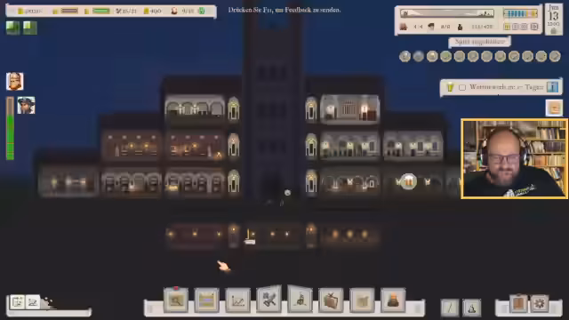 02:30:26Nach dem Sieg im Wettbewerb konzentriert sich der Streamer auf die Langzeitplanung. Er entscheidet, Forschungspunkte zu sparen, da die aktuelle Forschung nur noch geldwerte Vorteile bringt, die nicht mehr im Fokus stehen. Stattdessen wird die Grundinfrastruktur des Klosters ausgebaut: Ein zweites Laboratorium wird gebaut und eingerichtet, um mehr Forscher beschäftigen zu können. Gleichzeitig wird der Versuch unternommen, die nervige Quest des Bierschoffs zu lösen, indem ein frisches Bier in die Vorratskammer gefüllt wird, um die Hälfte mit saisonalen Zutaten zu füllen. Der Erfolg hängt davon ab, ob die Bierqualität hoch genug ist.