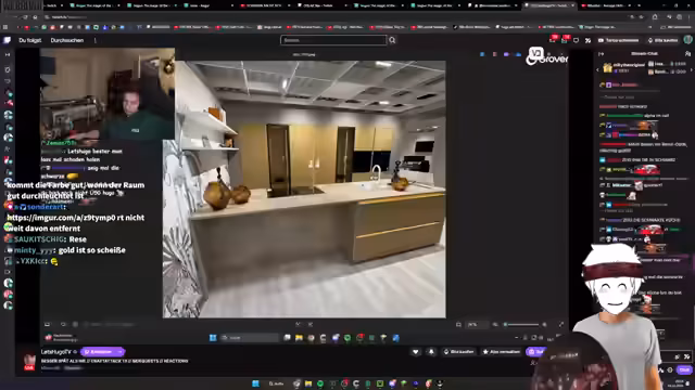 04:11:29Ein Streamer äußert sich verwirrt über einen Songwunsch, der angeblich nicht auf seiner Liste stand. Es stellt sich heraus, dass der Song 'Teenage Dirtbag' tatsächlich auf der Liste steht, was für Überraschung sorgt, da der Streamer diesen Song aufgrund seiner Stimmlage nicht singen kann. Es wird spekuliert, ob der Song gefälscht wurde oder ob es ein Missverständnis gab. Ein anderer Streamer, Hugo, kündigt an, dass er bald mitmachen wird und sogar vom Flughafen aus dabei sein könnte. Die Unterhaltung wechselt zu Hugos neuer Küche, die er in einem Shop zusammengestellt hat. Er ist begeistert von seinem Design, aber der Chat und die anderen Streamer sind weniger überzeugt. Die Farbe der Küche wird kritisiert und als unpassend für ein teures Neubauhaus empfunden. Es wird überlegt, ob ein hellerer Boden die Küche besser zur Geltung bringen könnte, aber Hugo ist unsicher und möchte die Verantwortung für eine solche Entscheidung nicht übernehmen. Die Diskussion über die Ästhetik der Küche und die unterschiedlichen Geschmäcker zieht sich durch den Stream.