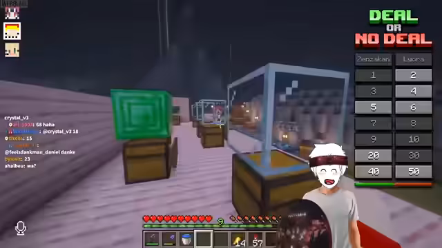 05:33:01Das Spiel 'Deal or No Deal' wird Eli erklärt, der als Teilnehmer fungiert. Es wird eine Browser-URL mit einer Übersicht der möglichen Preise (50, 40, 30, 20, 10, 9, 8, 7, 6, 5, 4, 3, 2, 1 Subs) sowie zwei Nieten (Sensor Kahn-Einladung und Liora-Paket) präsentiert. Eli muss eine Kiste auswählen, die bis zum Ende des Spiels verschlossen bleibt. Anschließend öffnet er nacheinander weitere Kisten, um deren Inhalt zu offenbaren. Nach bestimmten Runden wird ein 'Dealer' anrufen und ein Angebot machen, um Elis ausgewählte Kiste abzukaufen. Eli muss dann entscheiden, ob er den Deal annimmt oder weiterspielt. Die Assistentin wird vorgestellt, die bei der Show assistieren wird. Eli wählt Kiste Nummer 10 aus, da er vermutet, dass die Produzenten nicht damit gerechnet haben, dass er diese Zahl wählen würde. In den ersten Runden öffnet Eli die Kisten 5 (2 Subs), 14 (7 Subs), 7 (10 Subs) und 11 (Sensor Kahn-Einladung). Nach der Öffnung der Kiste 8 (3 Subs) ruft der Dealer an und bietet 16 Subs an, was Eli als 'Frechheit' ablehnt und sich für 'No Deal' entscheidet, um weiterzuspielen.
