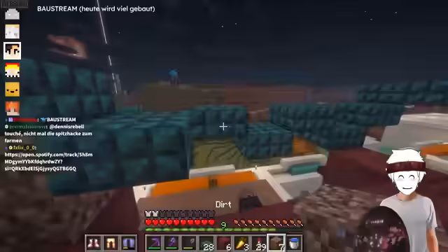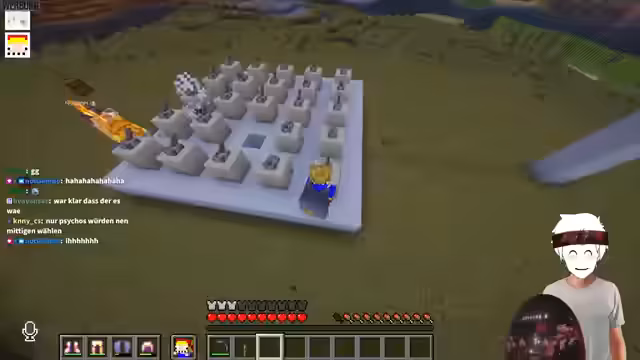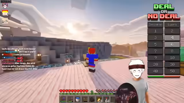 10:56:44Der Streamer und sein Gast beginnen eine neue Challenge: Der Gast muss rückwärts über eine Brücke laufen, die der Streamer hinter ihm baut, wobei an einer Stelle ein Loch ist. Der Gast darf nicht sehen, wo das Loch ist und muss sich darauf verlassen, wie weit er sich traut zu gehen. Der Gast fällt schließlich in das Loch, was zu einer humorvollen Frustration führt. Anschließend folgt eine weitere Challenge: Der Gast erhält eine unbekannte Menge an Blöcken und muss damit so hoch wie möglich tower, ohne alle Blöcke aufzubrauchen. Er entscheidet sich, 33 Blöcke zu platzieren und hat noch 15 übrig, was als gutes Ergebnis gewertet wird. Die Challenges sind darauf ausgelegt, das Vertrauen und die Risikobereitschaft des Gastes zu testen und sorgen für unterhaltsame Momente im Stream.