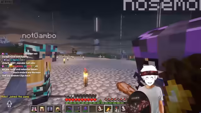 00:45:34Niki, ein Gast im Stream, präsentiert sein neues, eigenes Setup in der Streamer-WG, das sich in einem ehemaligen Fitnessstudio von Max befindet. Er bestätigt, dass er nun über einen eigenen PC und alle benötigten Geräte verfügt. Die Fähigkeit, vom PC ins Wohnzimmer zu wechseln, ist jedoch nicht mehr gegeben. Niki erzählt, dass er für die Hochzeit seines Bruders drei Monate lang heimlich Klavier gelernt und vier Songs einstudiert hat, die er nun immer wieder spielt. Er berichtet auch von der Reaktion seiner Oma auf den Kupfergolem in Minecraft, die von der Statistik des Golems beeindruckt war. Der Streamer und Niki besprechen das bevorstehende „Dress to Impress“-Event um 20 Uhr, bei dem Kategorien wie „Trauer“ oder „Sport“ vorgegeben werden und die Teilnehmer ihre Skins anpassen und eine Performance abliefern müssen. Sie planen, gemeinsam als Dreierteam mit einem weiteren Teilnehmer anzutreten, da Niki sich ebenfalls nicht offiziell angemeldet hat. Niki muss sich noch mit dem Skinwechsel vertraut machen. Die Säuleneröffnung findet um 18 Uhr statt, gefolgt vom „Dress to Impress“-Event. Die Jury besteht aus HandofBlood, Tamina und Zombey.