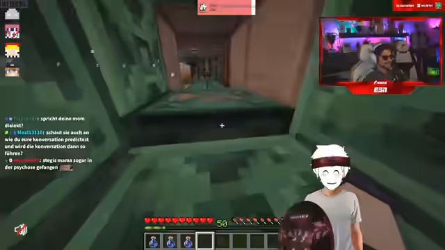 11:24:13Die letzte Challenge besteht darin, so lange wie möglich unter Wasser zu bleiben, ohne Schaden zu nehmen. Der Gast ist mit Respiration II verzaubert, was die Zeit unter Wasser erheblich verlängert. Er muss sich mit F1 und ausgeschaltetem Ton unter Wasser begeben, um nicht zu wissen, wann er Schaden nimmt. Nach 45 Sekunden beendet er die Challenge, da er befürchtet, Schaden zu nehmen. Die Challenges sind darauf ausgelegt, die Nerven des Gastes zu strapazieren und für Spannung im Stream zu sorgen.