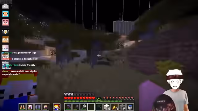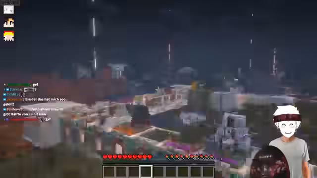 02:55:41Die Spieler erkunden die Minecraft-Welt, fliegen herum und diskutieren über ihre Eindrücke. Es wird gefragt, was sich in den Gebäuden befindet, und festgestellt, dass diese hohl sind. Die Atmosphäre wird als „sehr satisfying“ beschrieben, und es werden Vergleiche zu einem Drogentrip oder einer Ketaminzeremonie gezogen, da das Gleiten durch die Welt ein ungewöhnliches Gefühl vermittelt. Die Spieler wundern sich über das Verhalten anderer und die surreal wirkende Umgebung. Die Musik wird kurzzeitig ausgeschaltet, um die volle Wirkung der visuellen Eindrücke zu genießen, bevor sie wieder eingeschaltet wird. Es entsteht eine Diskussion darüber, ob der Flug mit oder ohne „Slow Falling“ und Raketen besser ist, wobei die Meinungen auseinandergehen.