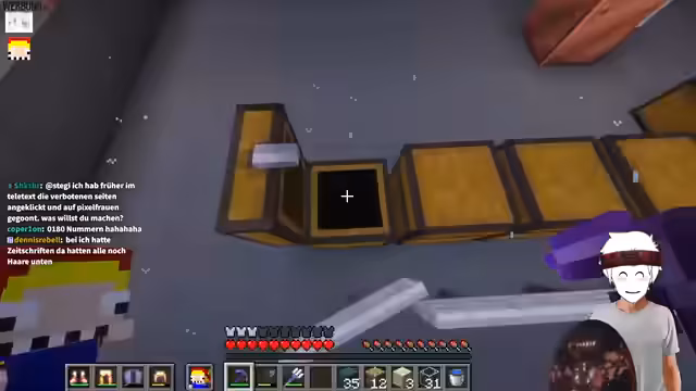12:27:59Die Diskussion geht weiter mit persönlichen Fragen, wie dem Alter des ersten Kusses, wobei der Streamer zögert und sich schließlich auf 17 Jahre festlegt. Er stellt im Gegenzug dieselbe Frage an Veto, der sie als zu privat ablehnt. Anschließend präsentiert der Streamer eine von ihm gebaute Redstone-Konstruktion, die er als 'Kunstausstellung' bezeichnet. Es handelt sich um eine Mechanik, bei der Kolben hochfahren, wenn Blätter ihren Zustand ändern, was ein komplexes Redstone-Signal erzeugt. Er erklärt die Funktionsweise der Observer, die den Status der Blätter überwachen und so die Kolben aktivieren. Die Präsentation ist ein Beispiel für die fortgeschrittenen Redstone-Fähigkeiten des Streamers und seine Kreativität im Spiel.