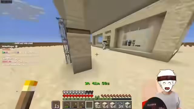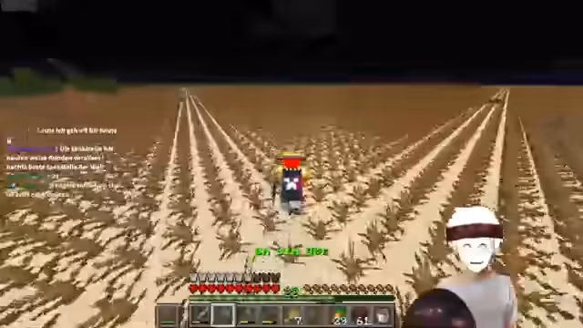 04:08:41Nach den turbulenten Phasen der Verteidigung und des Baus wird die Basis konsolidiert. Es wird ein Tankstellen-Konzept mit Villager als 'Tankstellen-Mitarbeitern' etabliert. Der Fokus liegt nun darauf, das Gelände zu vervollständigen und die Infrastruktur wie die Sandstein-Farm zu optimieren. Der Streamer scheint sich in einer ruhigeren, planenden Phase zu befinden, während er nach Hexen für das Redstone ausschaut.