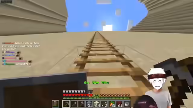04:02:06Es werden Zweifel an der Funktionsfähigkeit der Minecart-Konstruktion für das automatische Looten geäußert. Streamer testen die Anlage und stellen fest, dass sie zwar gut aussieht, aber vermutlich nicht permanent wie gewollt funktionieren wird. Es wird deutlich, dass ein Mix aus manueller Arbeit und Automatisierung nötig ist, um das Ziel zu erreichen und nicht alles vollkommen automatisch laufen kann.